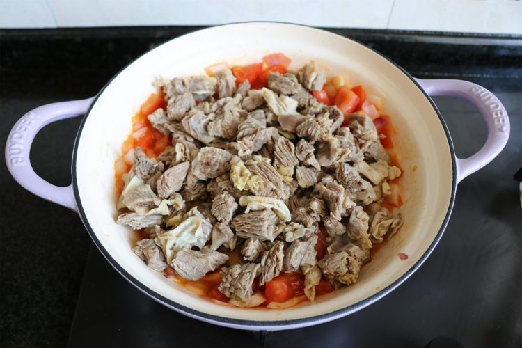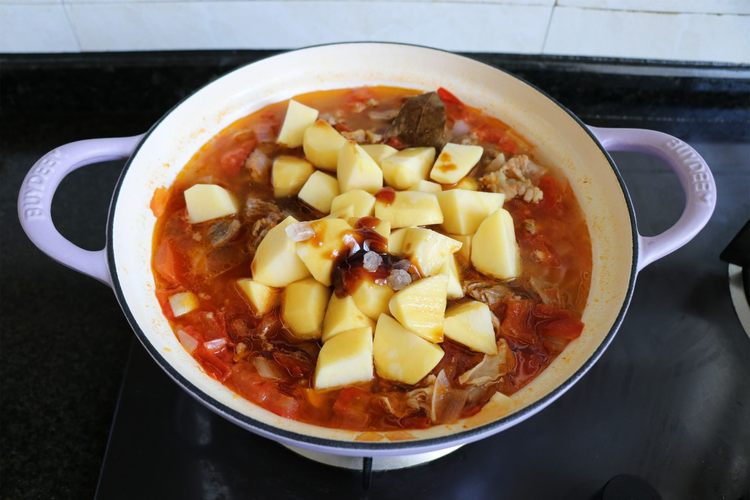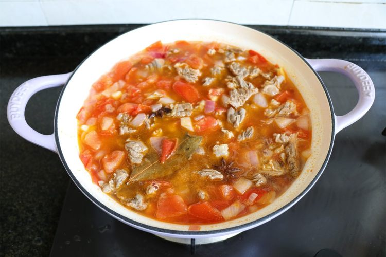 2.炖牛腩我喜欢用珐琅锅做,因为其导热快、保温性能好,独特的循环烹饪能够保持肉质鲜美、食材原汁原味,锁水性能好,不易炖干,这也是牛腩炖煮易软烂的一个技巧