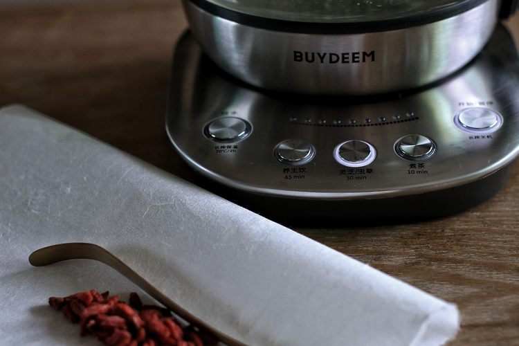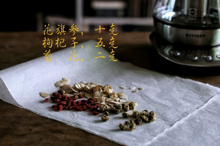 将西洋参和菊花放入养生壶,加水至800ML,启动虫草/灵芝键