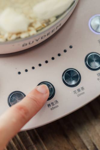 雪梨、马蹄与薏米一起放入养生壶中,加水至1200ml。