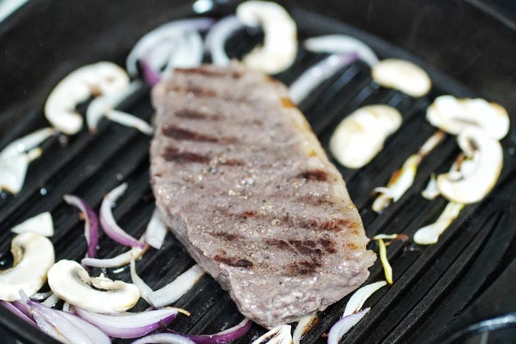 牛排大小不同,放入养生壶要保证水能没过牛排,水不够的话要再加些,煎的时候可以切些洋葱丝和蘑菇,互相增香