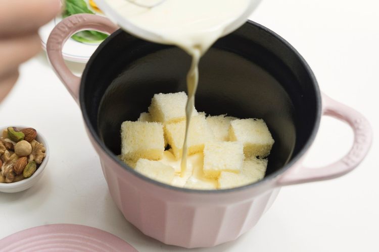 .鸡蛋、淡奶油、牛奶、细砂糖打散