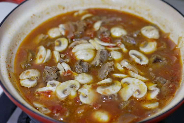 加入开水,中火煮开后转至小火盖上锅盖炖煮至软烂,大约需要90分钟