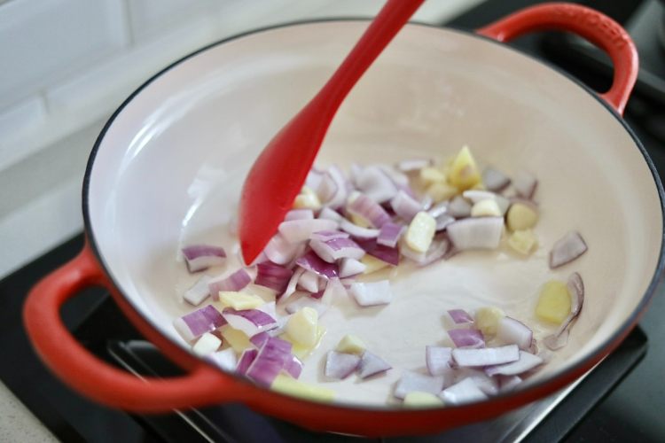 热锅倒油,放入蒜、洋葱和姜片大火爆香