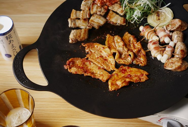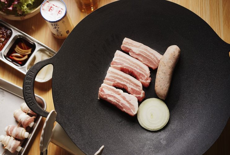 2. 腌制的五花肉薄片务必小火慢煎,以保证烤出多余油脂而外层不至于焦苦。
