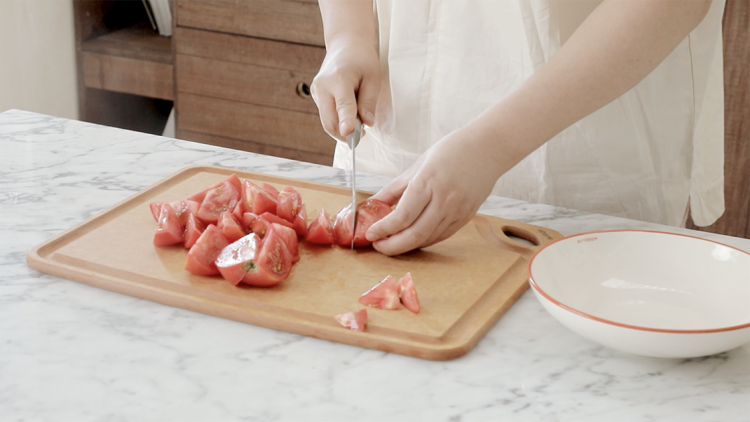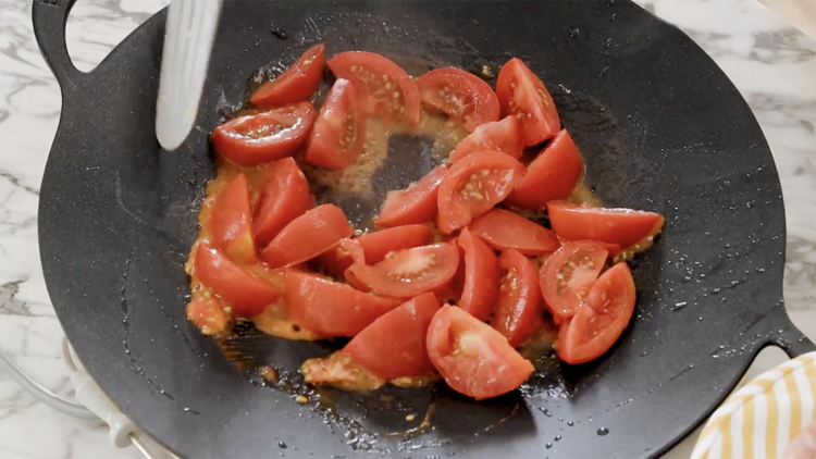 再倒入少许油烧热,倒入番茄块煸炒,时间可以稍长点激发出番茄香