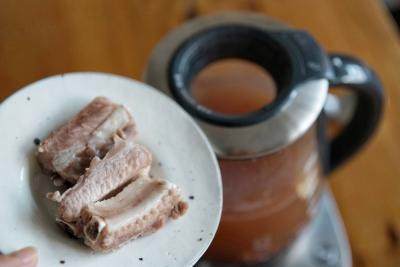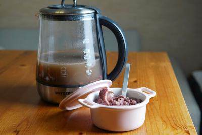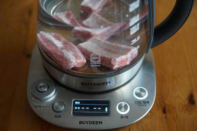 待养生壶断电后放入排骨,再次启动养生汤模式。