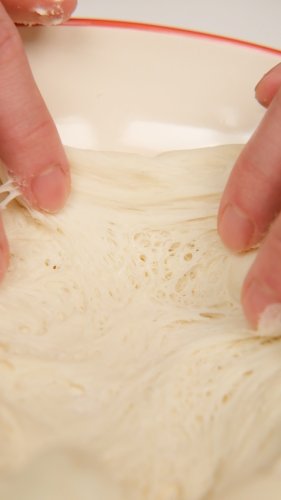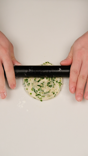 用手将纹路压扁,擀面杖擀大一些,再入北鼎烤箱中发酵模式40℃,发酵15分钟。发酵好后吃不完的可以保鲜膜密封冷冻保存,随吃随煎