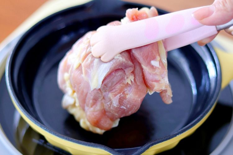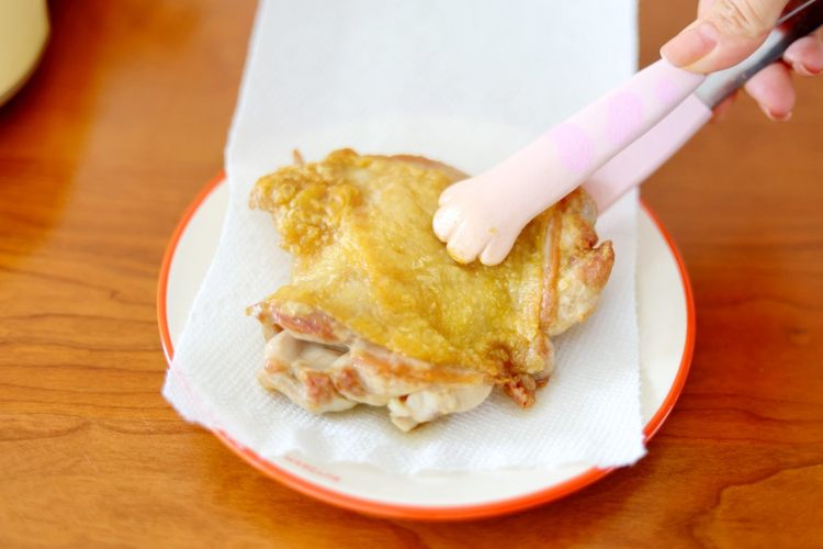 2. 如果怕热量高,可以在煎鸡腿肉的时候,一边煎一边用厨房纸吸掉锅里的油,就会是很清爽无压力的煎鸡腿了。