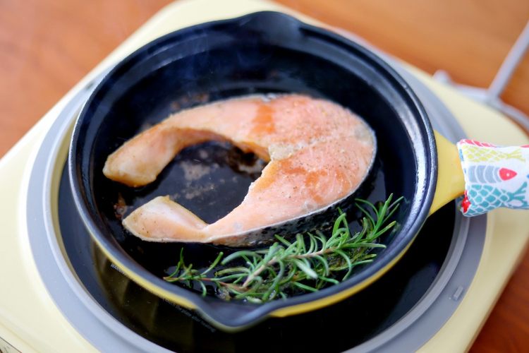 1. 铸铁锅煎鱼肉完全不会粘的秘诀是,将锅烧到足够热再放入鱼肉,这样下锅,甚至在不放油的情况下都完全不粘锅,高温会快速锁住鱼肉表面的水分,鱼肉也会又香又嫩。