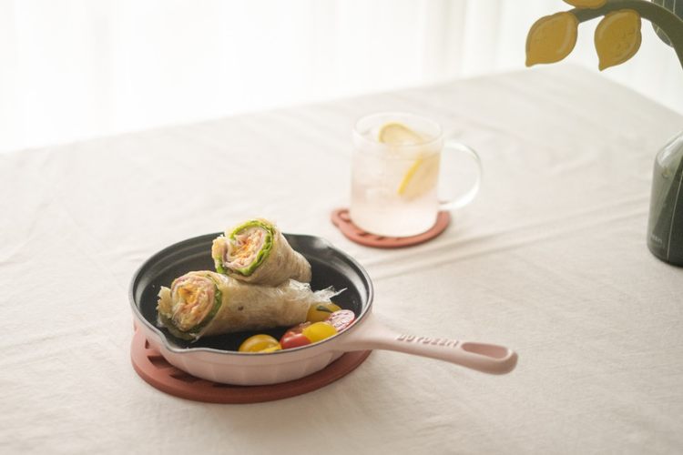 搭配小番茄和一杯柠檬气泡水,中西结合的早餐就摆在你面前啦~