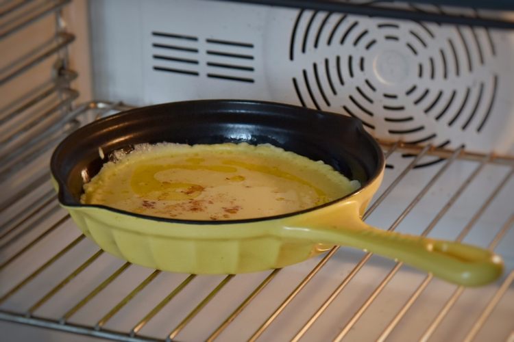 2. 从烤箱内取出煎锅时,使用隔热小北帽,小心烫。