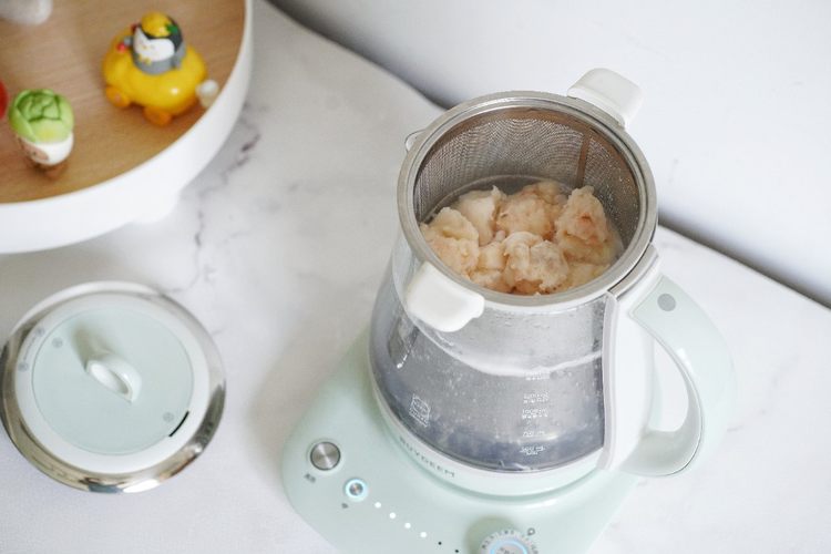 待水烧开后,用小勺将虾滑刮成圆球形,依次下入快食篮中。待程序结束虾滑全部浮起即可
