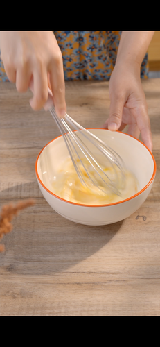 鸡蛋打散、倒入牛奶搅匀,面粉过筛加入轻轻搅拌均匀,调入适量海盐黑胡椒粉