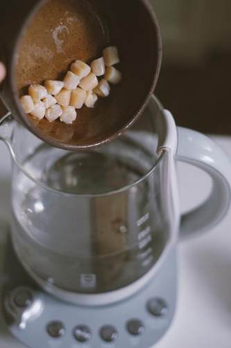 模式结束后,加入处理好的鲜豆腐和干贝,启动水果茶模式。