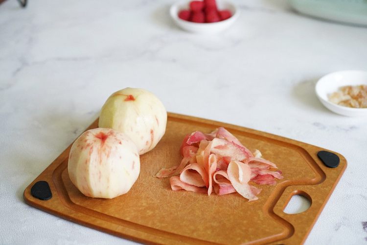 3. 桃子低温慢炖出来的外层口感微微软,更有罐头的质感。