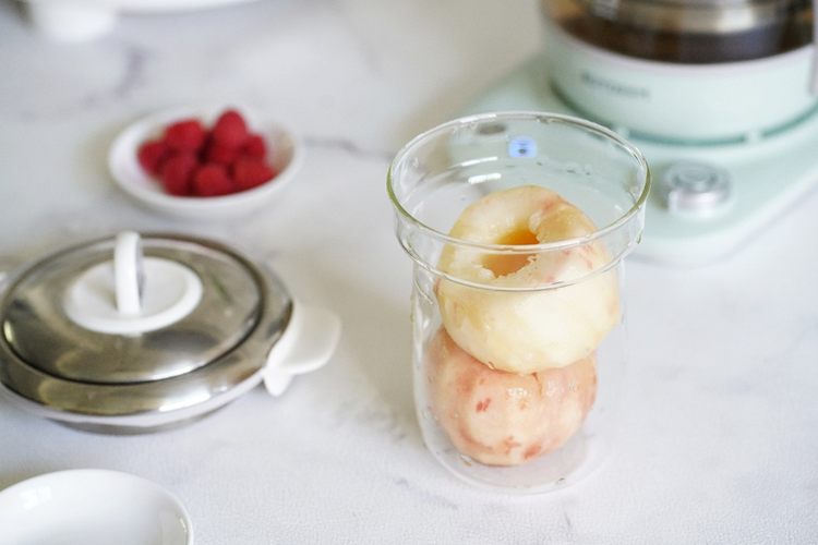 2. 若水蜜桃体积过大,不方便放入炖盅。也可以将其切块放入。