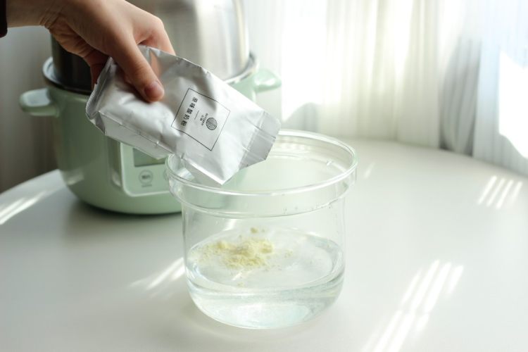 炖盅内准备400毫升清水,加入北鼎原味酸奶粉,搅拌均匀