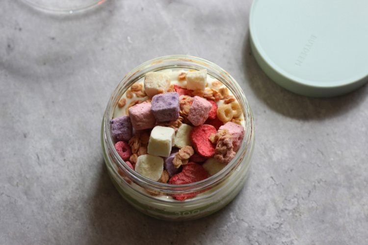 准备干净杯子,向杯中依次挤一层牛油果泥→铺一层即食燕麦→再一层酸奶→一层牛油果泥→一层酸奶→最后铺一层麦果脆,一个酸奶燕麦杯就做好了