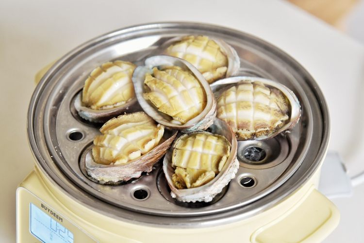 锅中放好蒸盘,利用蒸汽将海鲜分别蒸熟:虾(3分钟)、蛏子(3分钟)、蛤蜊(3分钟)、鲍鱼(5分钟)、螃蟹(15分钟),一次放不下可以分几次蒸,注意掌握好时间