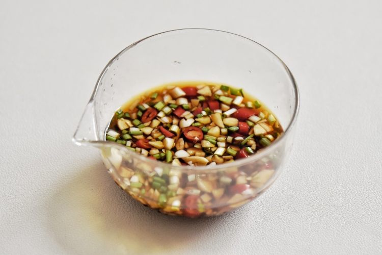所有海鲜蒸熟后装盘,搭配海鲜蘸料(见配料表)即可享用