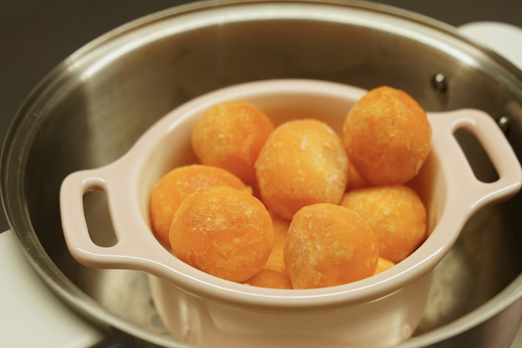 咸蛋黄放入养生壶蒸格,开蒸煮模式。