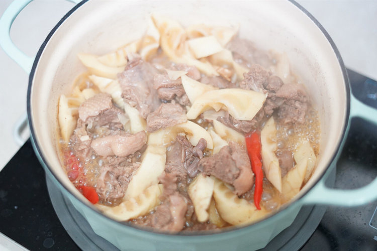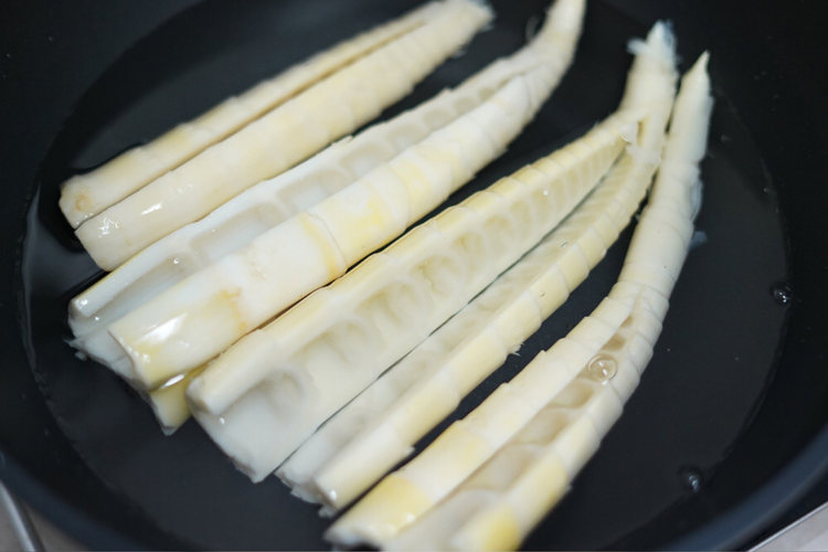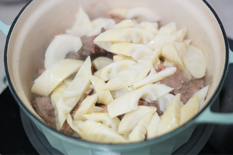 3. 笋和冷水一起下锅加盖煮开,这是妈妈教我的秘诀,不开盖煮能避免笋发苦。