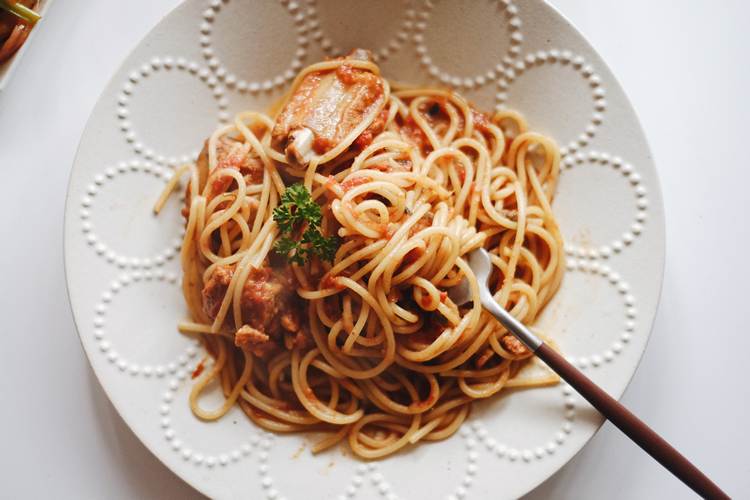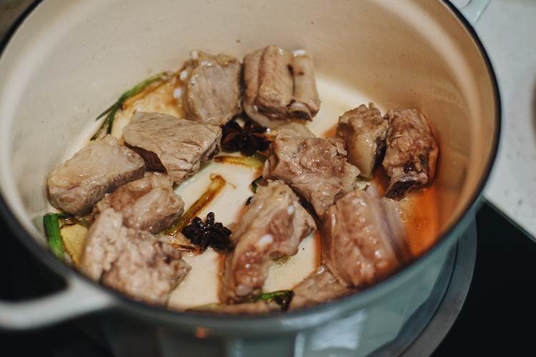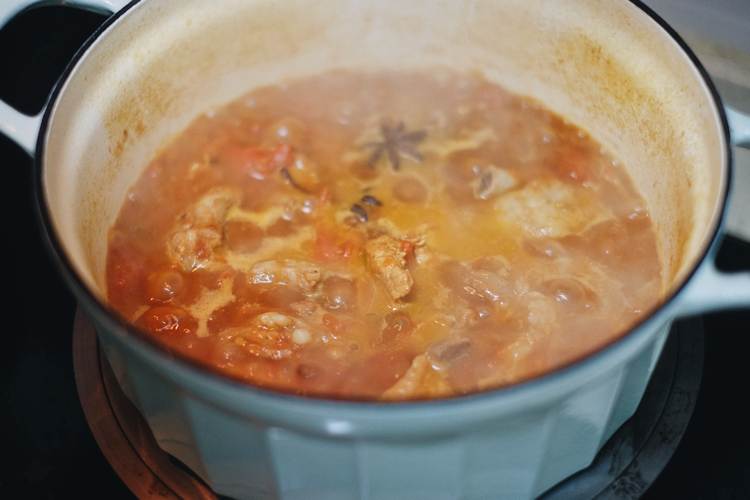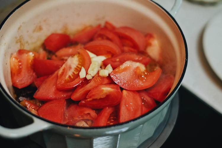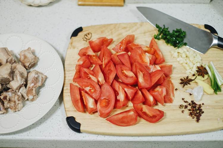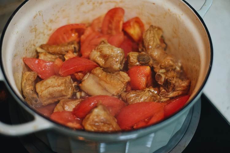 经过焖炖的番茄已经不见了身影,但茄汁却渗入了排骨的每个毛孔里,每一口排骨都有浓郁的番茄香味,清爽开胃超适合天热吃!