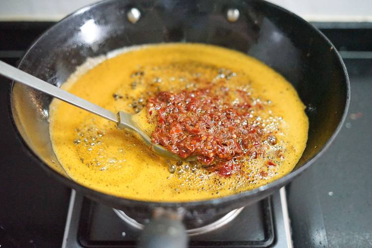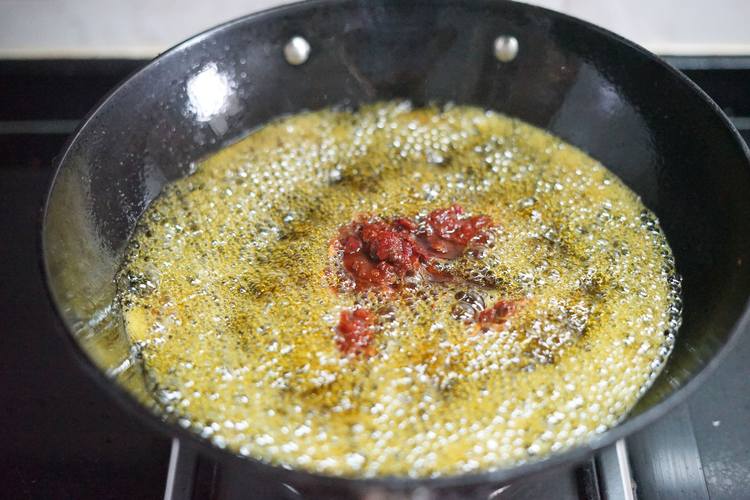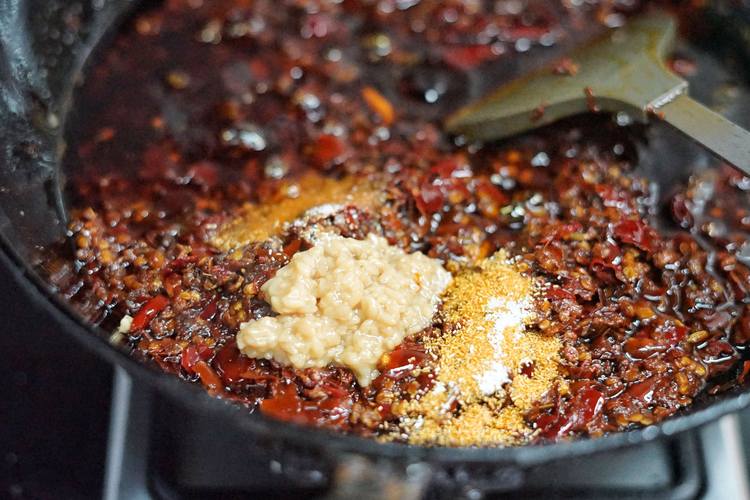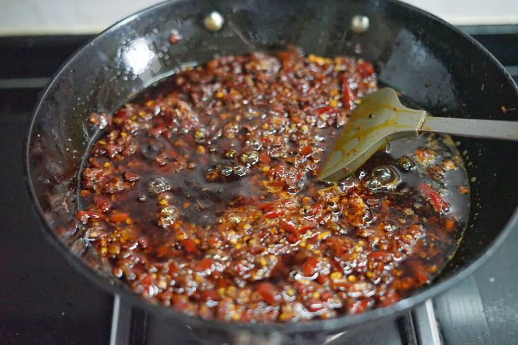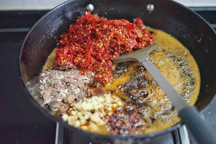 3. 炒料一定要注意,糊掉了整锅底料都会有很明显的苦味。
