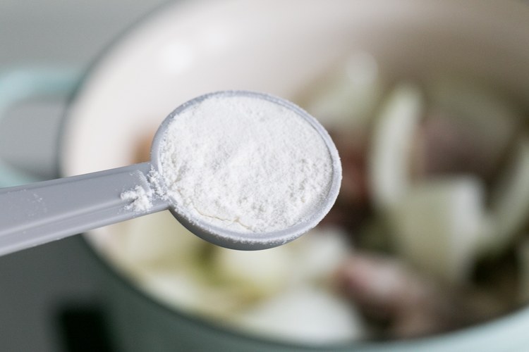 加一大勺面粉(随便什么面粉都可)翻炒均匀铺在菜上~