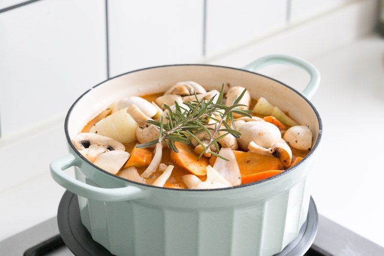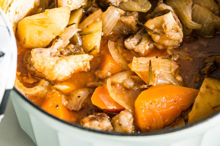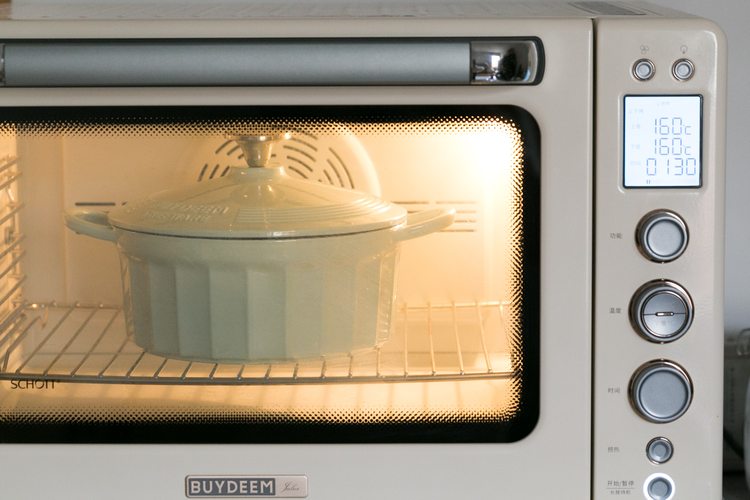 放进预热好的烤箱160度烤2个小时~(注意:因为我的菜和水比较多,这个放进烤箱的时间只提供一个参考,大家可以自行调整,可以先烤一个半小时再观察一下锅内的汤汁够不够再适当延长时间)。