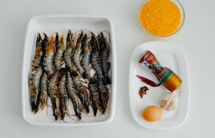 1. 面包糠有白色和黄色两种,建议购买黄色,烤出来颜色好看。2. 建议买个头稍大的虾。
