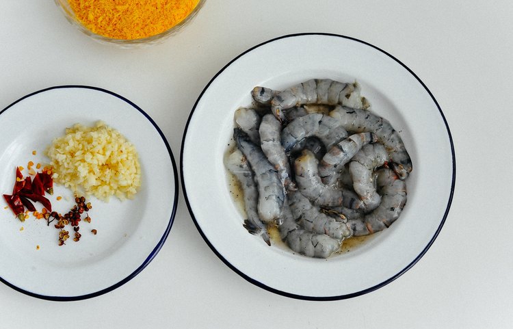 大虾去头去壳,挑去虾线,洗净沥干水分。蛋清中加入1茶匙黑胡椒粉和1/2茶匙盐,将处理好的虾仁放入,搅拌均匀,腌渍片刻。