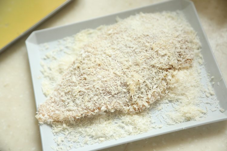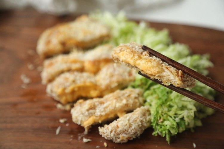 如果有黄金面包糠,记得用黄金面包糠来裹啊!!样子会好看得多,我因为来不及在网上买,只买到超市的这种白面包糠,卖相就不够金光闪闪的那么诱人啦,但味道是一样好吃的!