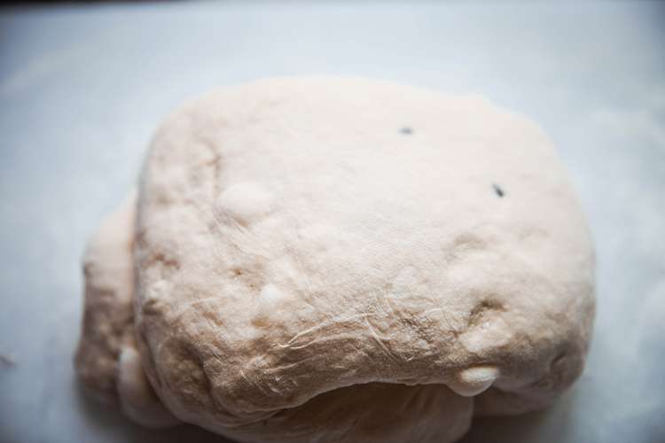 差不多搅拌18-20分钟。然后把面团放入烤箱或者发酵箱发酵,28度,发酵45分钟左右,时间可以根据面团调整,手戳面团,面团不回弹一发结束。