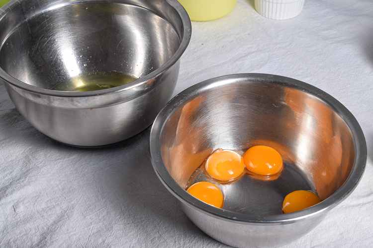 分离蛋白和蛋黄,容器一定要是干净无水无油的。