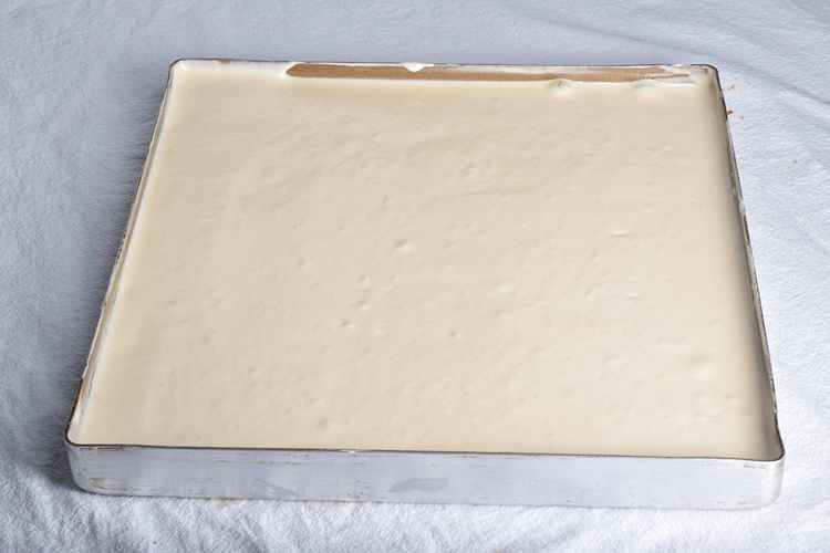 倒入其他剩下的面糊,用刮板刮平,震掉大气泡。送回烤箱中层,180度,15分钟。