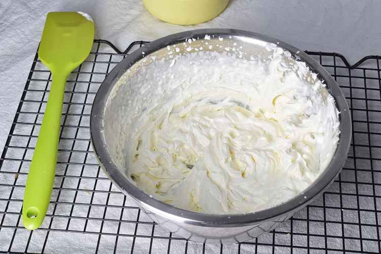 淡奶油事先一定要冷藏,不是冷冻。淡奶油加细砂糖用电动打蛋器打发,打硬,有明显纹路。