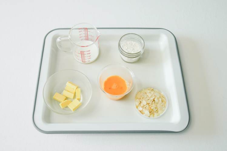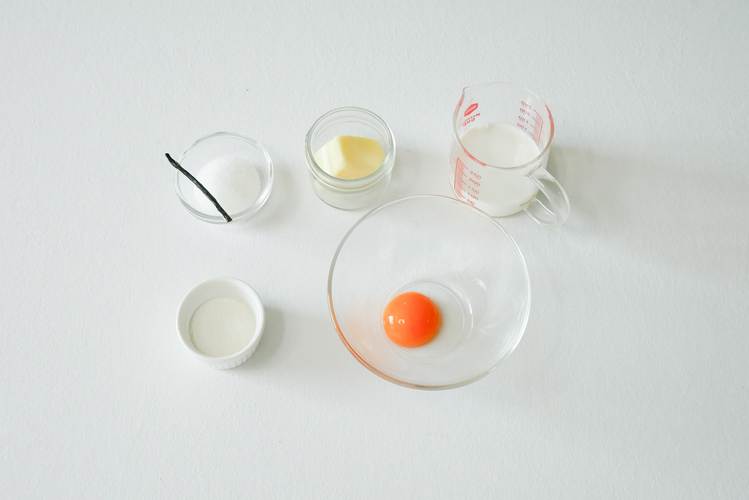 首先制作卡仕达酱内馅:卡仕达酱材料称量备好。