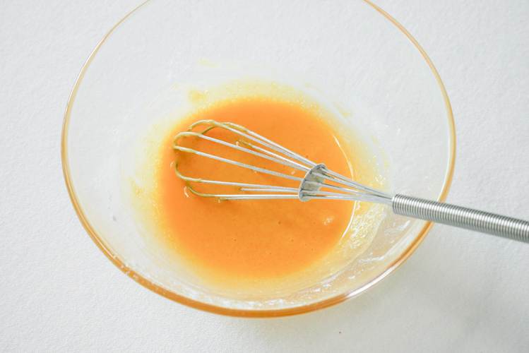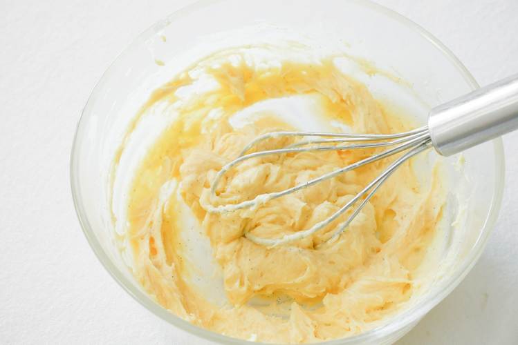 加入蛋液后用刮刀耐心搅拌,直至面糊完全吸收蛋液后再倒入下一次的蛋液。