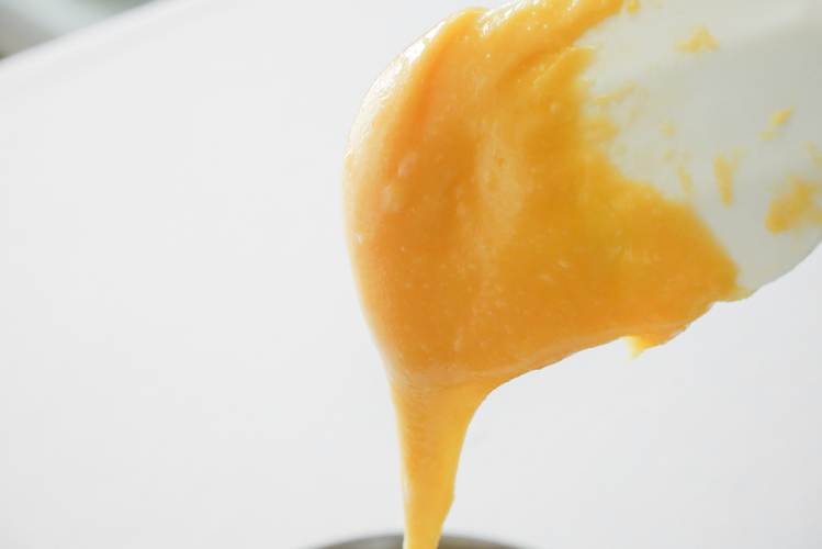 直至锅中冒出大泡泡,蛋奶糊变得细腻顺滑又浓稠的状态时即可关火盛出摊凉。
