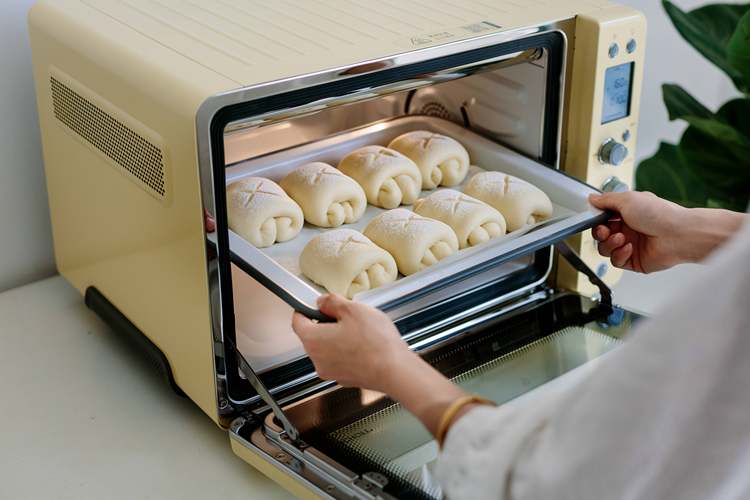 烤箱预热好了,把面包放进160度的烤箱里,中层烤12分钟。