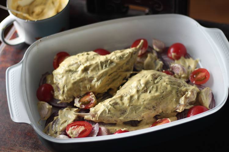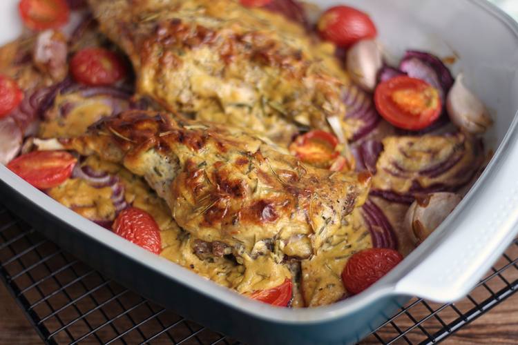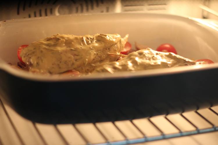 用到的勺子大概是cutipol正餐勺的大小,烤盘请用不沾的能进烤箱的烤盘,比较好清理的玻璃烤皿是不错的选择。大蒜不用剥皮!!迷迭香最好用新鲜的,实在没有新鲜的话,干的也行,迷迭香也可以换成百里香之类的香草,吃的时候避开,不要一直嚼香草,可能会有点涩。配菜比较随意,可以自由搭配,烤箱是用的北鼎的~