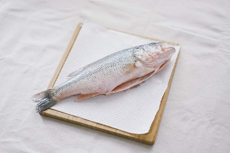 将鲈鱼清洗干净,用厨房纸吸干表面水分。