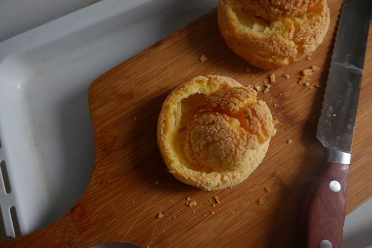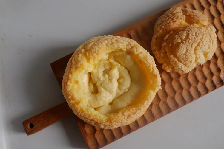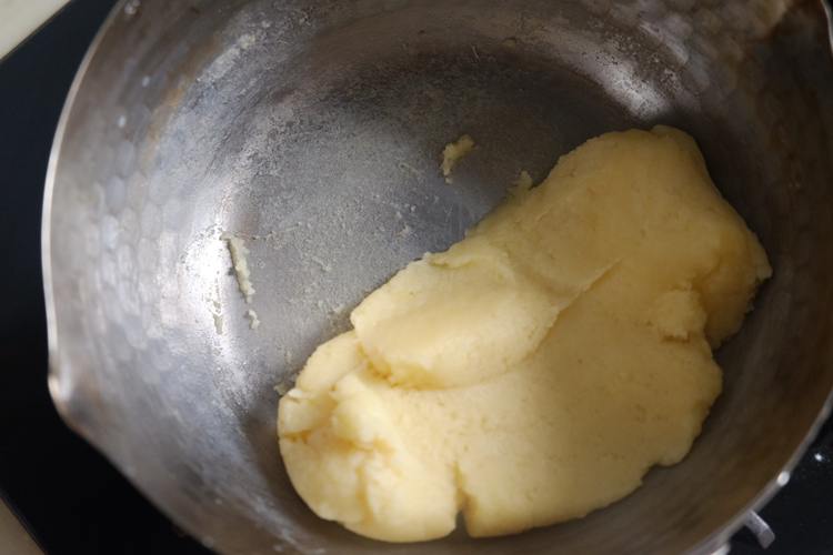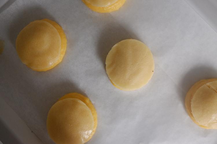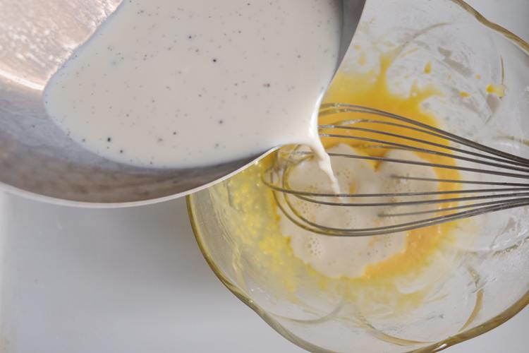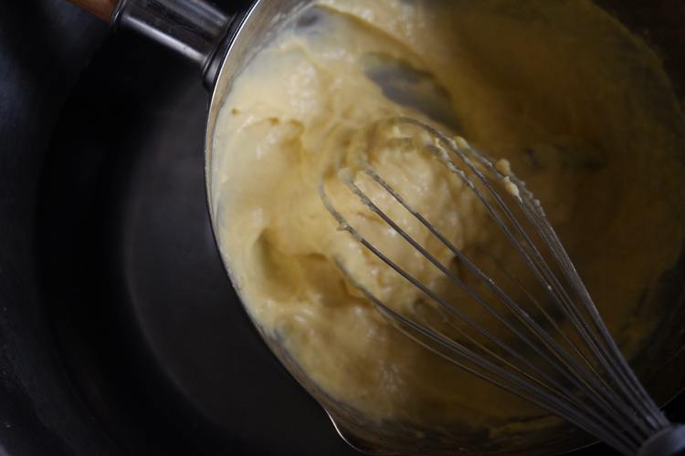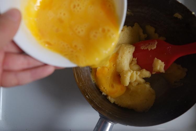 1. 蛋黄液分多次加入,可以舀起呈大小三角即可;