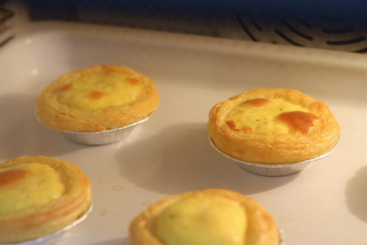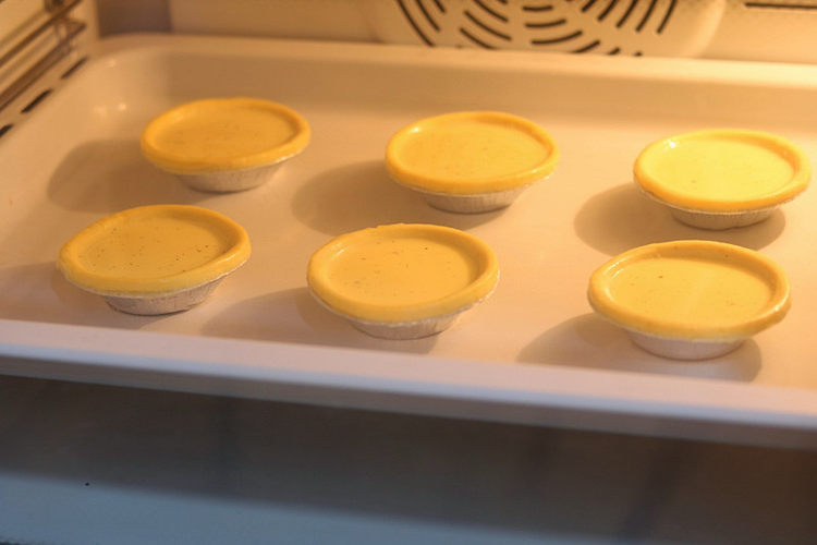 烤19-21分钟。最后几分钟观察一下蛋挞表面的颜色,出现焦黄的斑点状,差不多就熟了。
