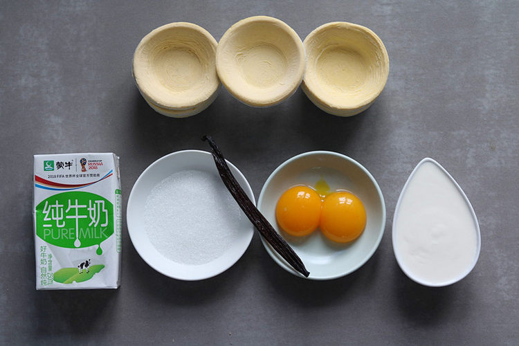 准备好原材料:蛋挞皮不用解冻,直接用即可。
