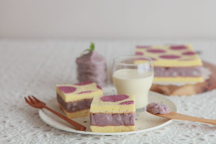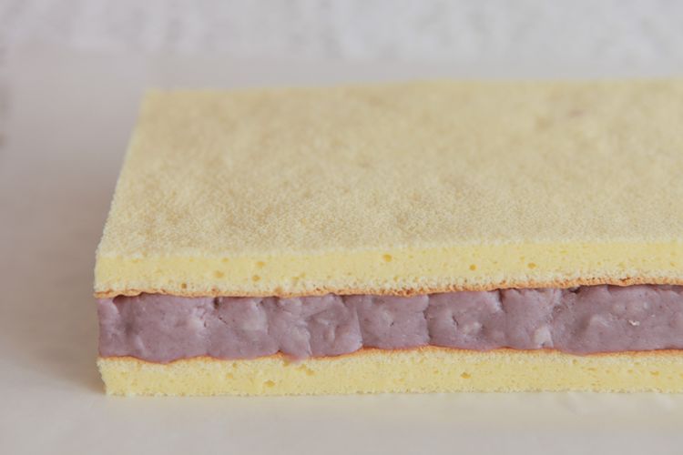 人见人爱的软绵绵芋泥,和朴素的海绵蛋糕也特别搭,抖上一层紫薯粉,就是很chic上相的可爱小甜点了~