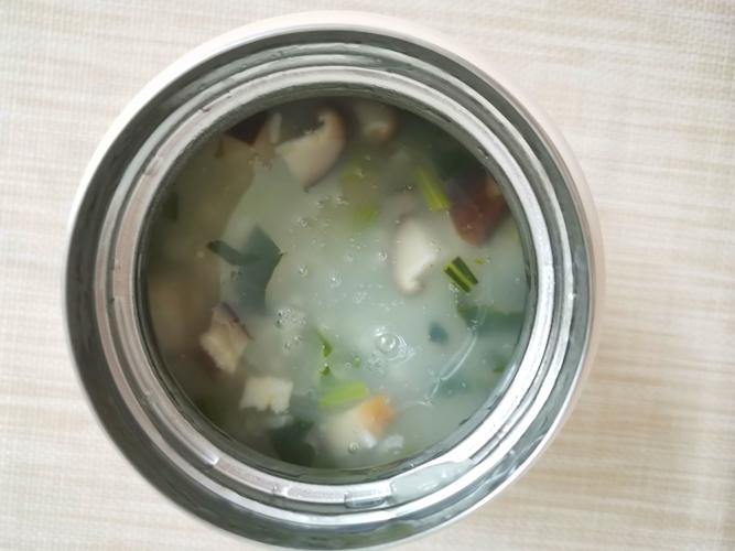 焖烧杯预热,依次放入虾仁/大米/蔬菜焖4个小时。