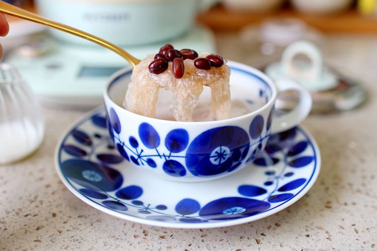 这次泡发了2盏燕窝吃了3次,第一次清炖加冰糖吃掉了,后面又做了不同口味,是比较适合夏天的吃法~