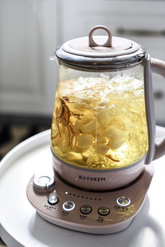 将所有食材放入养生壶,加水至1200ML左右,启动水果茶模式。